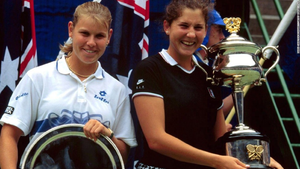 On January 27 1996 Serbian-born tennis player Monica Seles the former No. 1 womens player in the world defeats Anke Huber of Germany to win the Aust...