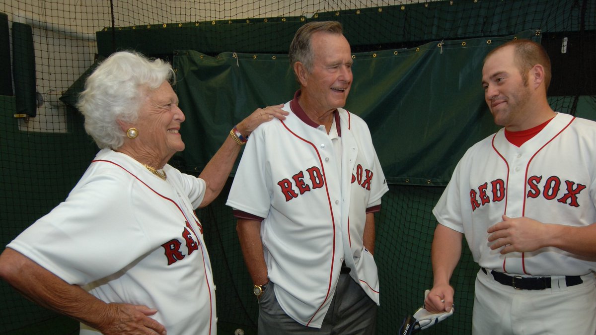 On this day in 2005 at a White House ceremony President George W. Bush congratulates the 2005 World Champion Boston Red Sox baseball team for winning their fi...